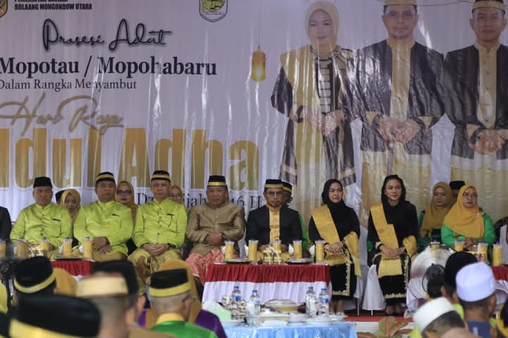BOROKO,FORKOTNews -Pemkab Boltara Menggelar Tradisi adat Budaya Mopohabaru atau Mopotau dalam rangka Pelaksanaan hari raya Idhul Adha 1446.H (10 Dzulhijah) bertempat di kediaman Bupati Bolaang Mongondow Utara (Boltara) ,Prosesi tradisi Adat Mopohabaru kali ini di Laksanakan Oleh Pelaksana adat Kecamatan Bintauna, acara berlangsung khidmat dalan nuansa keakraban kekeluargaan antara masyarakat dan Pemerintah daerah Boltara,juga di serahkan bantuan hewan Kurban ke Pemerintah Kecamatan dan Desa sekabupaten Bolaang Mongondow Utara “Selasa (03.05.2025)