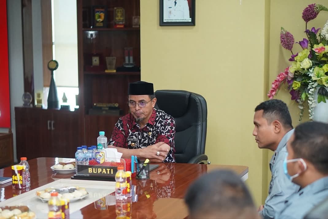 BOROKO,FORKOTNews-Bupati Bolaang Mongondow Utara (Boltara), Dr. Sirajudin Lasena, SE., M.Ec.Dev menerima Kunjungan Kerja dan Silaturahmi Kepala Stasiun Bakamla Manembo-Nembo Bakamla RI, Letkol Bakamla M. Ibnu Sina, S.Pd., MM beserta Tim yang bertempat di ruang kerja Bupati.”kamis (16.10.2025)