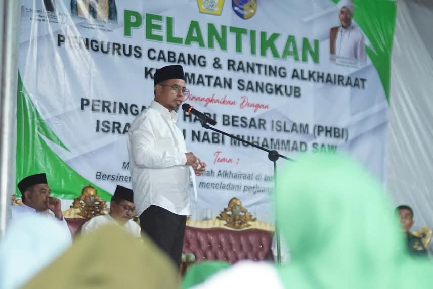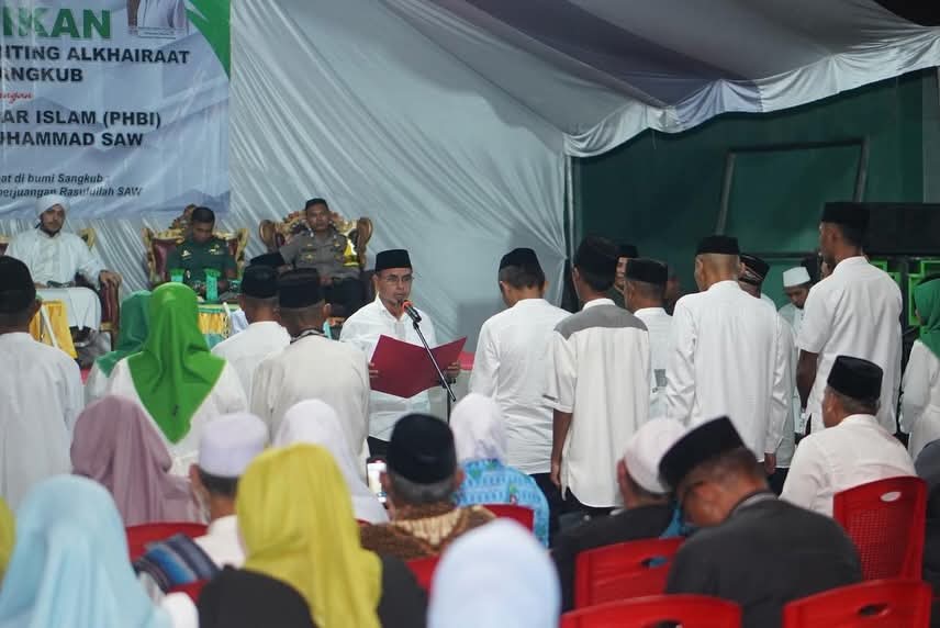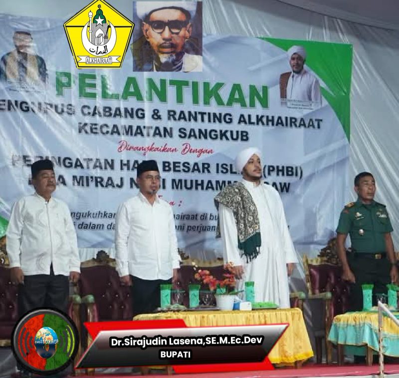 BOLTARA,FORKOTNews-Bupati Bolaang Mongondow Utara Dr. Sirajudin Lasena, SE.,M.Ec.Dev Melantik Pengurus Cabang Kecamatan Sangkub Masa Bhakti 2025-2030 di Rangkaikan dengan Peringatan Hari Besar Islam (PHBI) Isra Mi’raj Nabi Muhammad SAW. 7 Sya’ban 1447 Hijriah, hari Senin, 26 Januari 2026, Bertempat di Halaman Madrasah Tsanawiyah (MTS) Al Khairat Sangkub 1,pelantikan pengurus cabang dan ranting Al khairat sangkub oleh bupati boltara Dr.Sirajudin Lasena SE.M.Ec.Dev sekaligus ketua komisariat wilayah Al khairat bolaang mongondow raya (BMR) ,Rabu (28.01.2026)